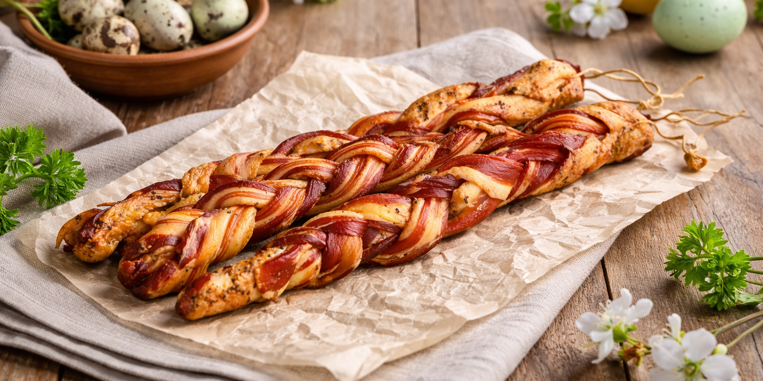Poctivá snídaňová slanina zapletená do charakteristického copu. Stačí odkrojit pár plátků na prkénko a často zjistíte, že mizí rychleji, než jste čekali. Je ideální ke snídani, na velikonoční stůl nebo jen tak k dobrému chlebu.