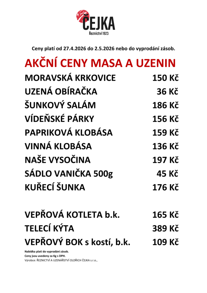 Nakupujte naše pochutiny za výhodnou cenu. Každý týden aktualizujeme akční nabídku našeho sortimentu.